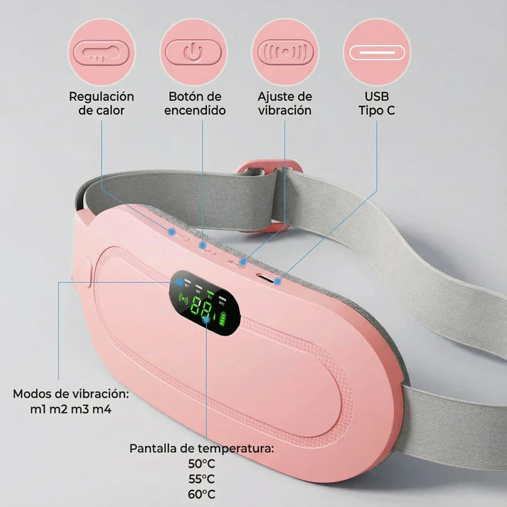 Proporciona calor terapéutico regulable que relaja la zona abdominal y ayuda a aliviar los cólicos menstruales.